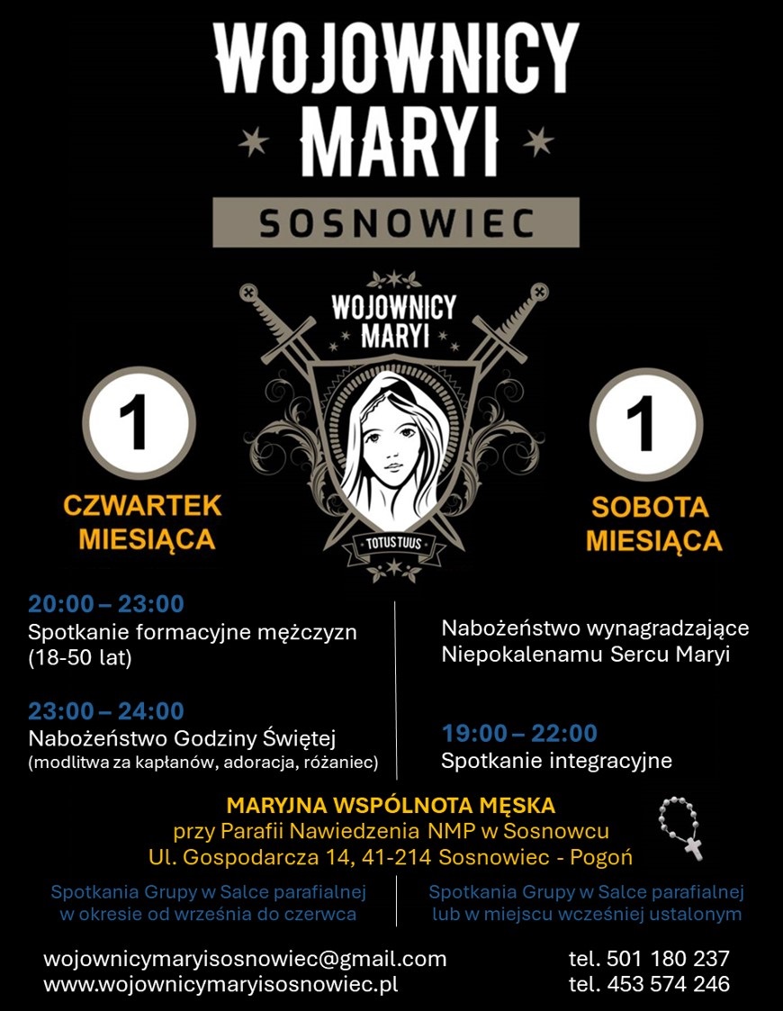 Wojownicy Maryi Grupa Sosnowiec zaprasza do parafii św. Jana Sarkandra w Siemianowicach Śląskich Bańgowie na Noc Walki o Błogosławieństwo dla …